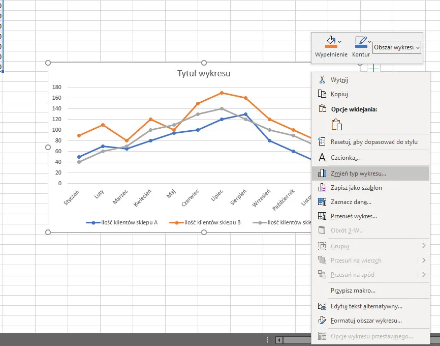 Po dodaniu drugiego wykresu czas na dostosowanie jego wyglądu. Warto zmienić kolory, aby serii danych były czytelne. Dobrze dobrane kolory sprawiają, że wykres staje się bardziej atrakcyjny. Możesz również dodać tytuł wykresu i etykiety osi, co jeszcze bardziej ułatwi interpretację danych.